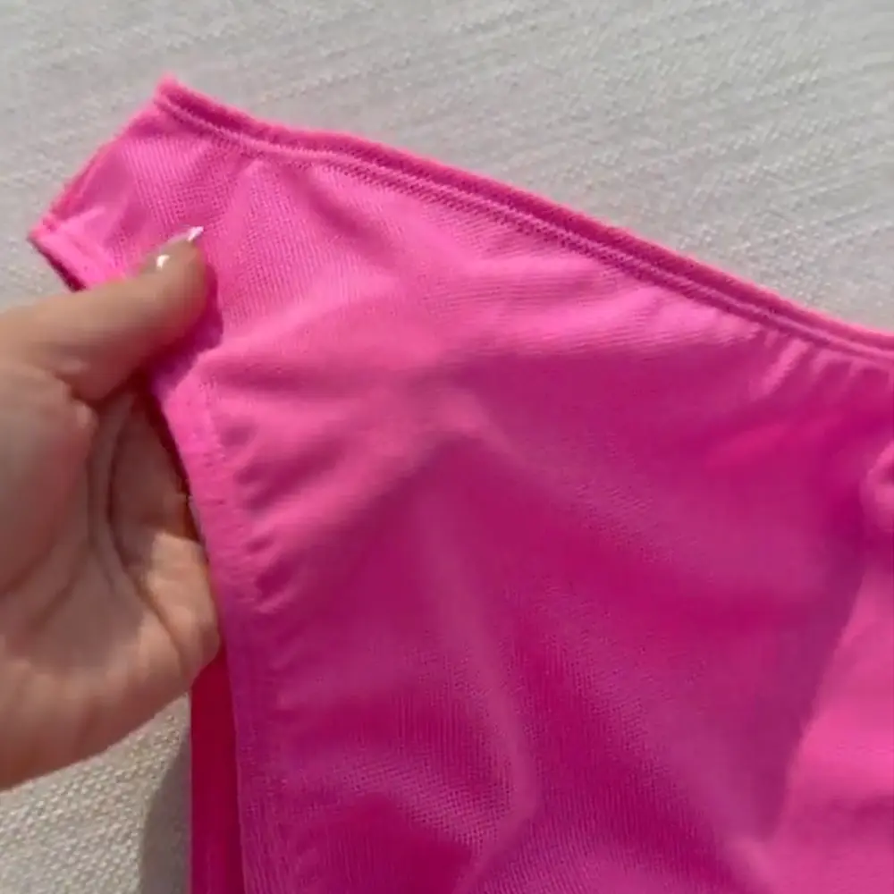 Jeśli jednak wybierzesz za mały rozmiar, materiał może się zbytnio naciągnąć i przez mikrootworki może stać się bardziej prześwitujący. Aby zapewnić Ci komfort, do każdego zamówienia dołączamy naklejki na sutki, które sprawiają, że nic nie prześwituje. Możesz też wybrać bikini o rozmiar większe – pamiętaj jednak, że może to nieco zmniejszyć przepuszczalność promieni słonecznych.